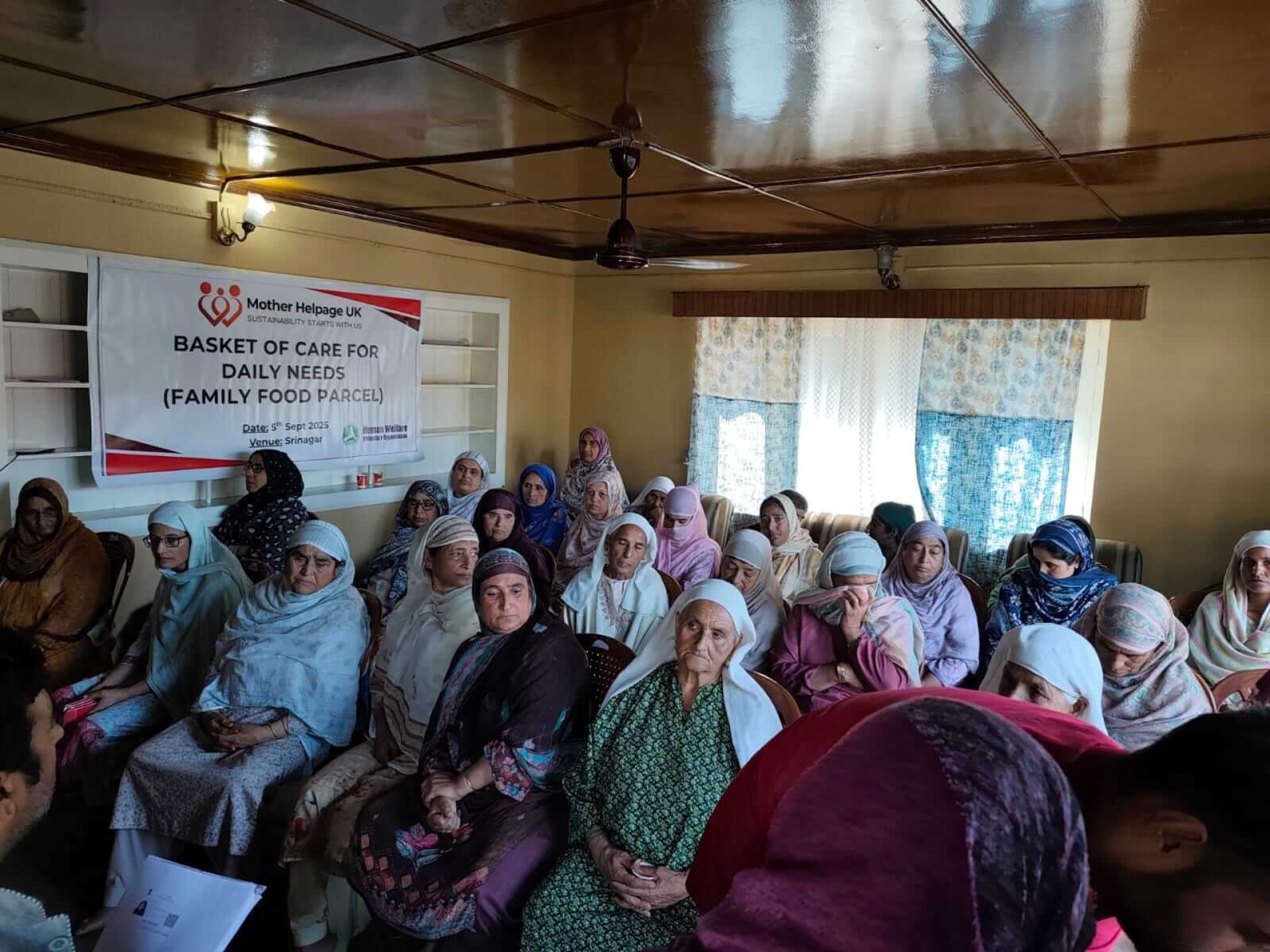 On 3rd September 2025, Mother Helpage UK extended its heartfelt support to 62 women in Handwara, Kupwara District. The distribution took place at the Community Hall, Qaziabad, Handwara.