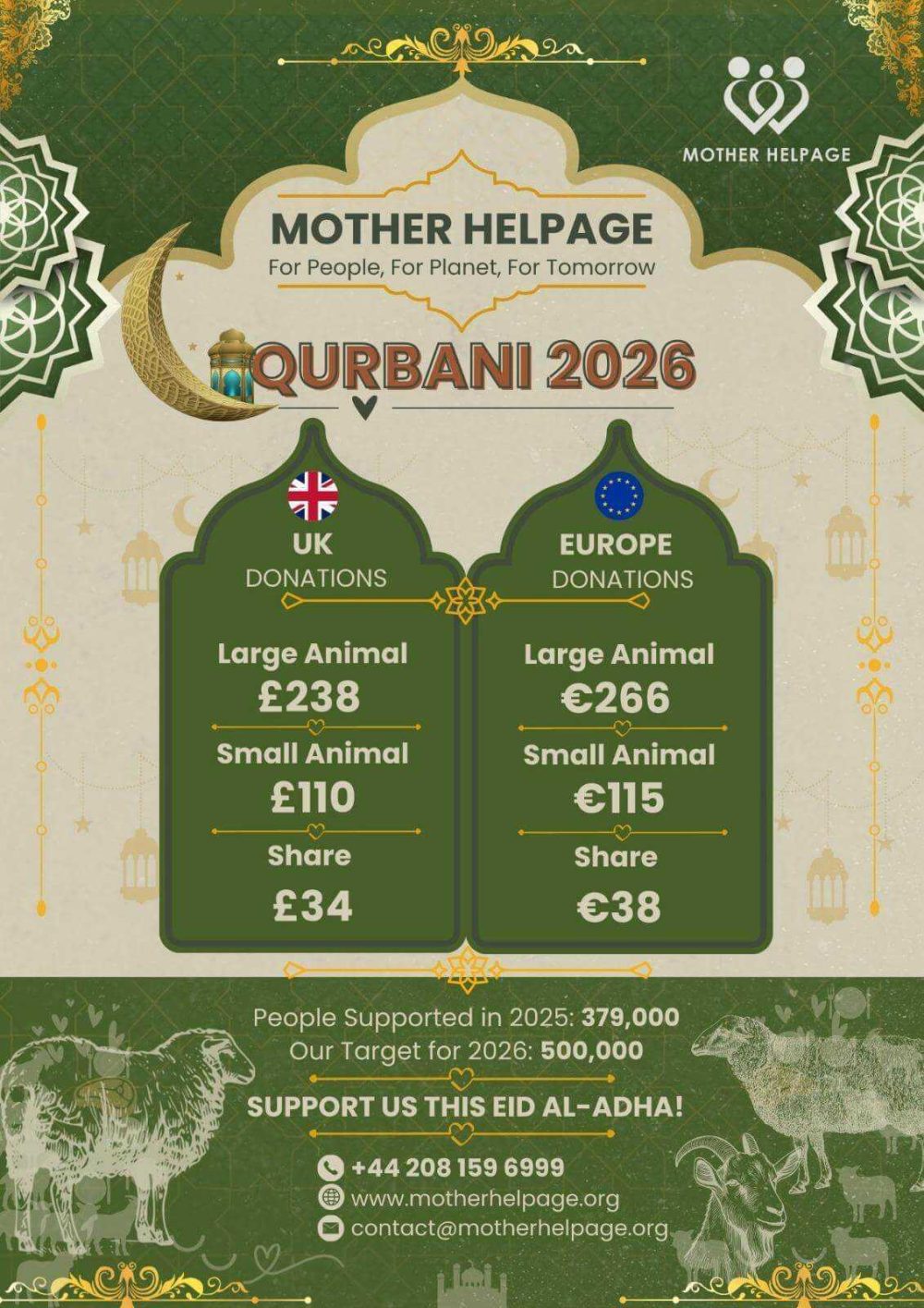 The Qurbani festival brings all of us closer to God. It reminds us to practise humility and devotion. The festival also brings together the entire Islamic community from across the world. Your generous donations and the work of Mother Helpage ensure that the poorest, most destitute communities who have been the most affected by the Covid pandemic, are not left out and are able to join in the celebration. Those are people who are the most in need of food. Qurbani meat provides them with short-term good quality, fresh, rich nutrition which will last days beyond the festival. The festival also boosts the local economy: farmers, butchers, drivers, local businesses who benefit from the repurposing of the animal hide, e.g, tanners, clothing, upholstery, leather goods, footwear businesses etc.